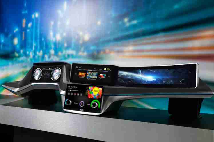 由 5G 和 AIoT 形塑的新智能场域,,,促使汽车成为仅次于家庭和办公室的第三重要使用空间,,,,数码驾驶舱因而成为智能车用技术发展重心。。。。优游UB8异型切割曲面驾驶舱显示器运用高解析、、、高对比度度、、、、广视角,,以及多片显示屏全贴合技术,,,衔接搭载 Mini LED 背光的仪表板显示器、、、、具备显示区通孔设计的内嵌式触控中控台显示器,,,以及位于副驾的 AHVA 广视角曲面显示器,,,,打造近乎一体成型的超大型驾驶舱显示器。。。为了提高驾驶安全和便利性,,用于后视镜的优游UB8 9.6寸异型切割 LTPS 显示器具有极窄边框,,,,可切换镜面或 LCD 模式,,并有防眩光设计可避免夜间的前灯眩光。。。